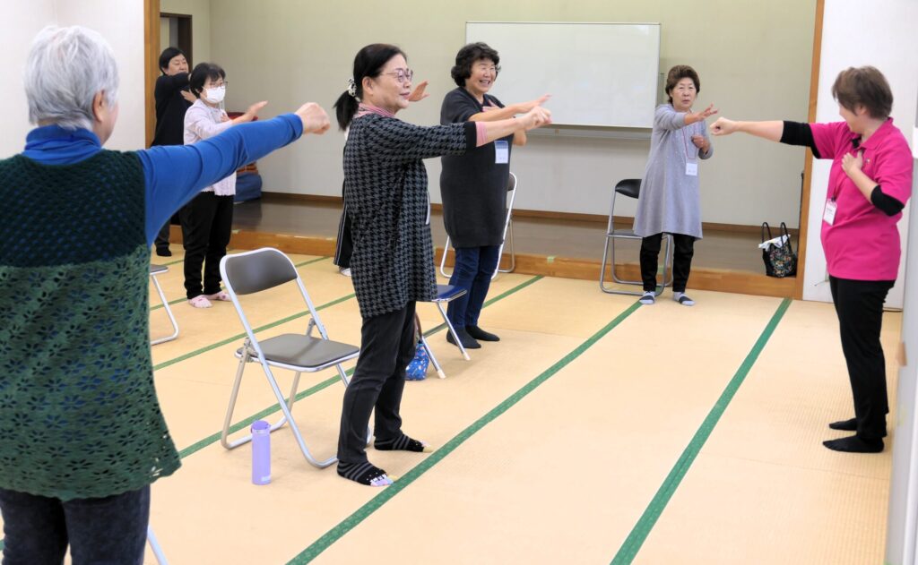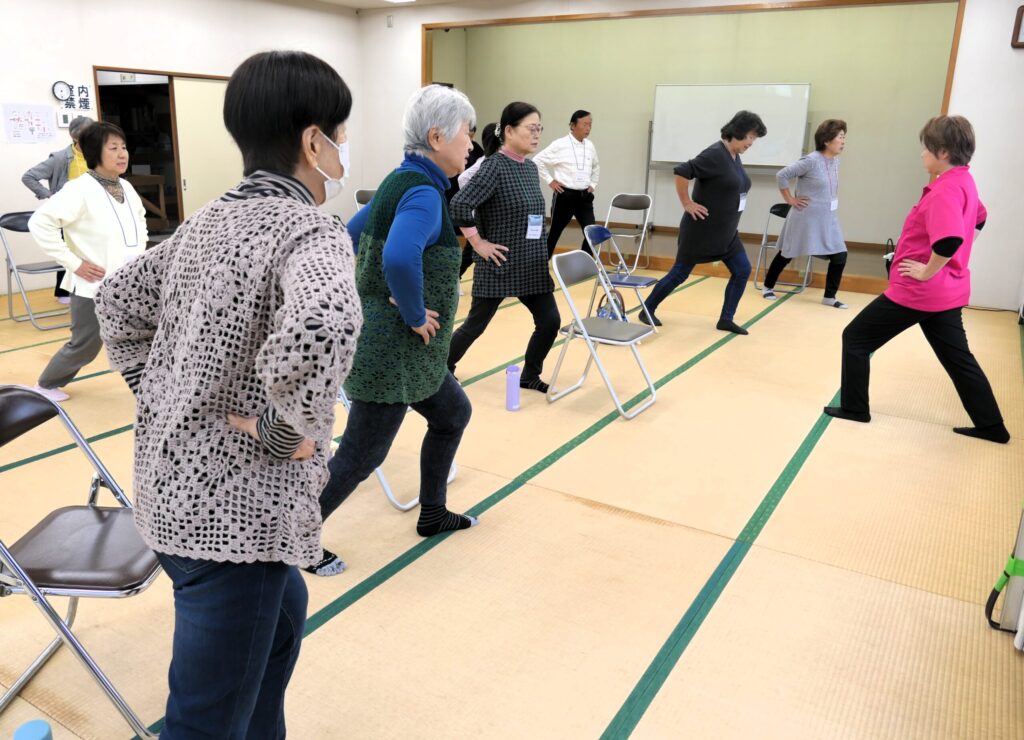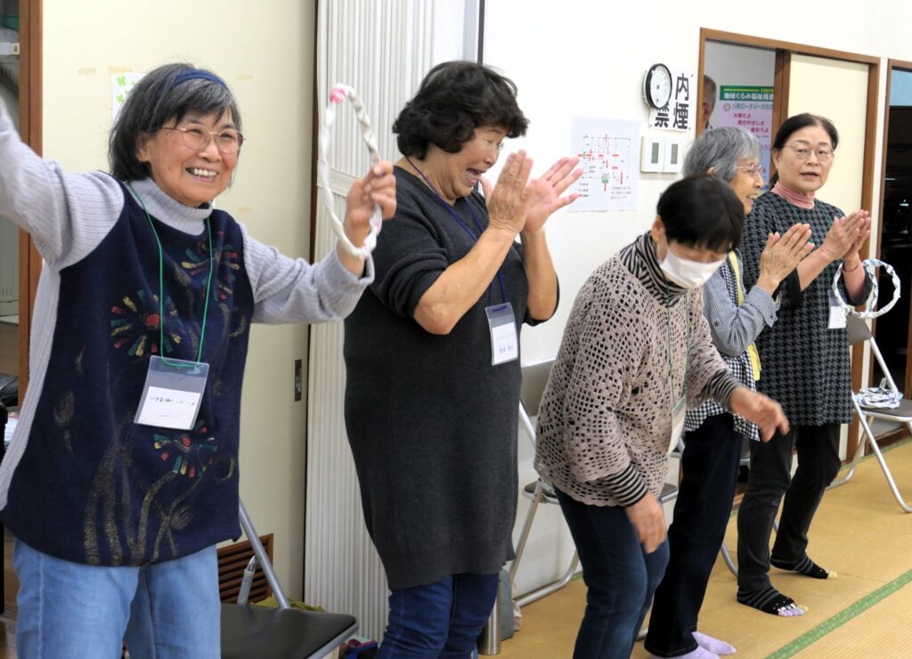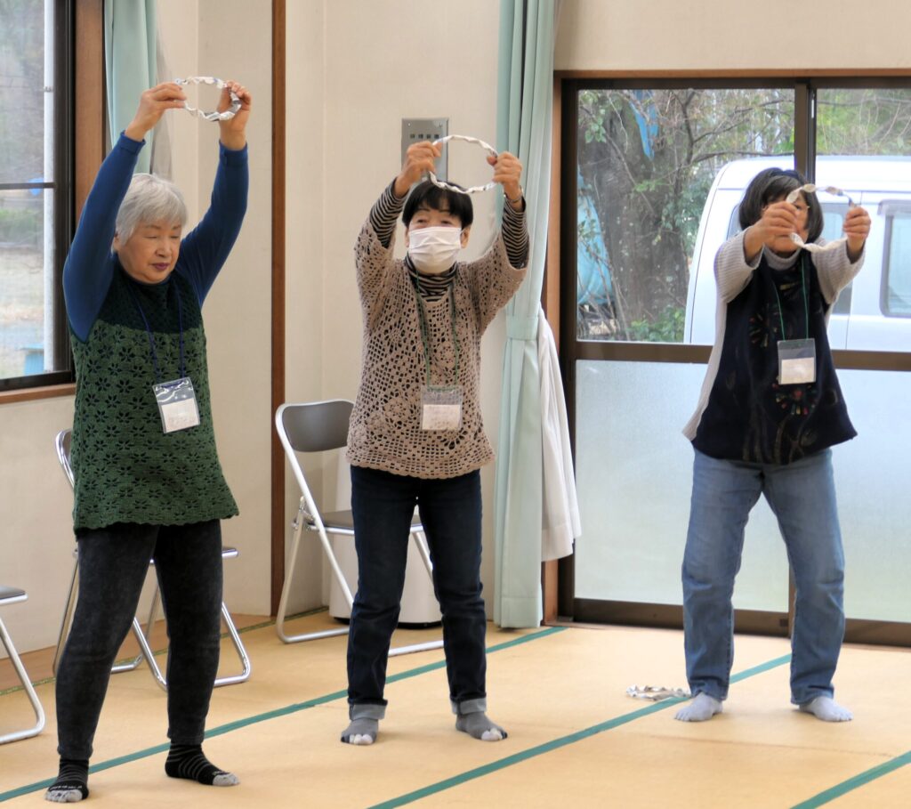 まずはいつもの体操で体をほぐして!今日のリズム体操♪は『高校三年生♪』です。