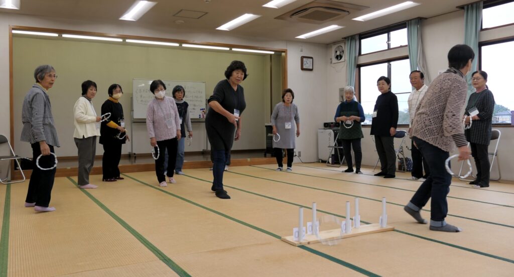 ねらった所になかなか入らない輪投げ😓意外と難しいですね💦