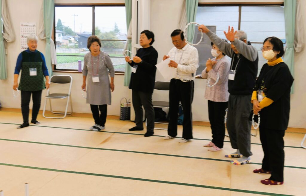 輪っかリレーもしました。おとなりへ おとなりへ~〇 足がつらないように気をつけてぇ😬