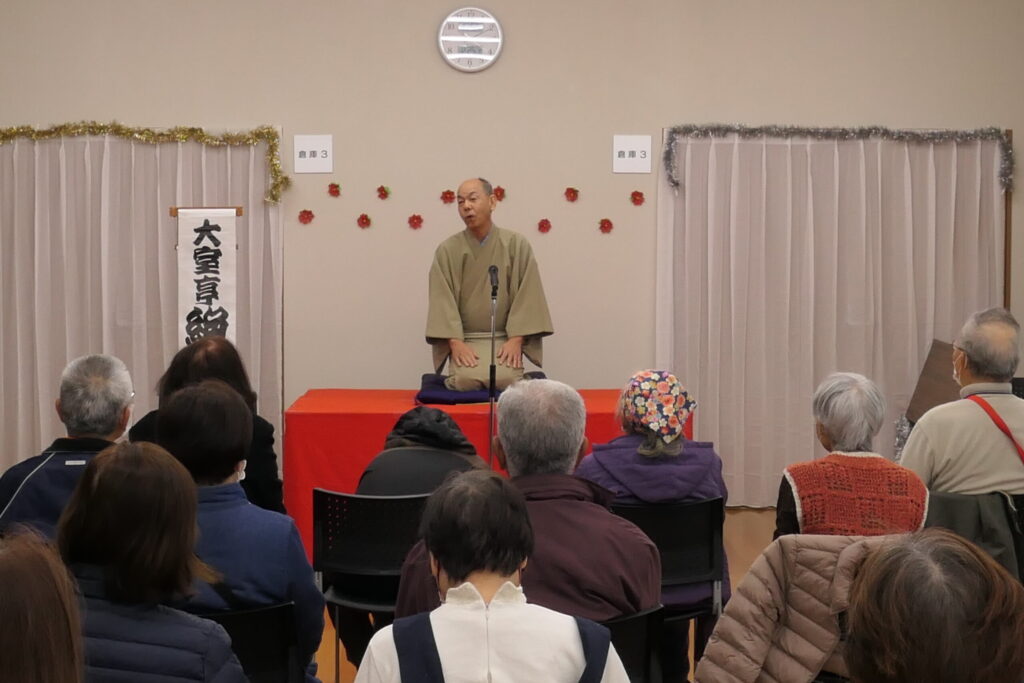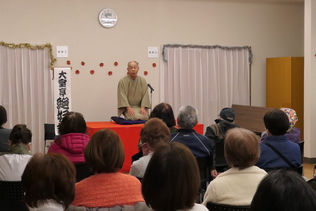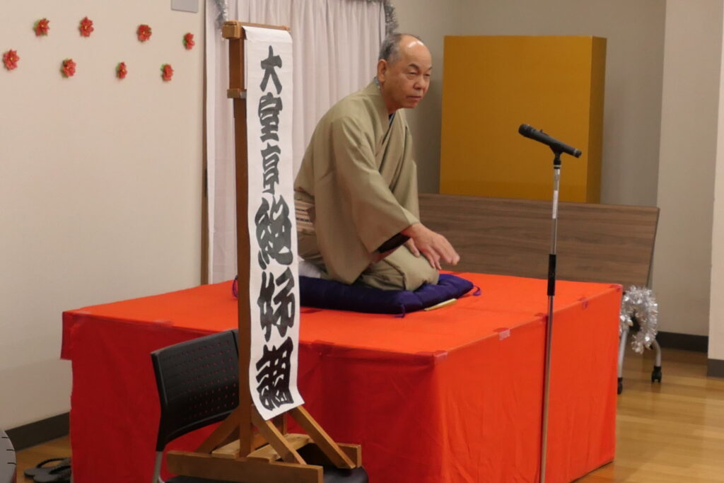 出演いただくのは「大室亭 絶好調」さん。「落語はね、おもしろいときには大いに笑いましょう。そうでないときにも大いに笑いましょう。これが落語を聞くときのマナーです(笑)」と、まずは、落語を聞くときの手ほどきをいただきましたーーーーーーヾ(≧▽≦)ノ