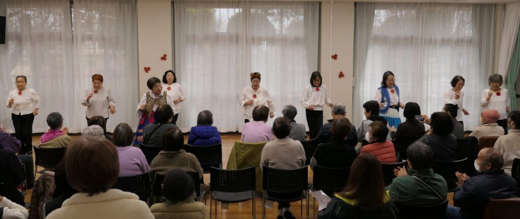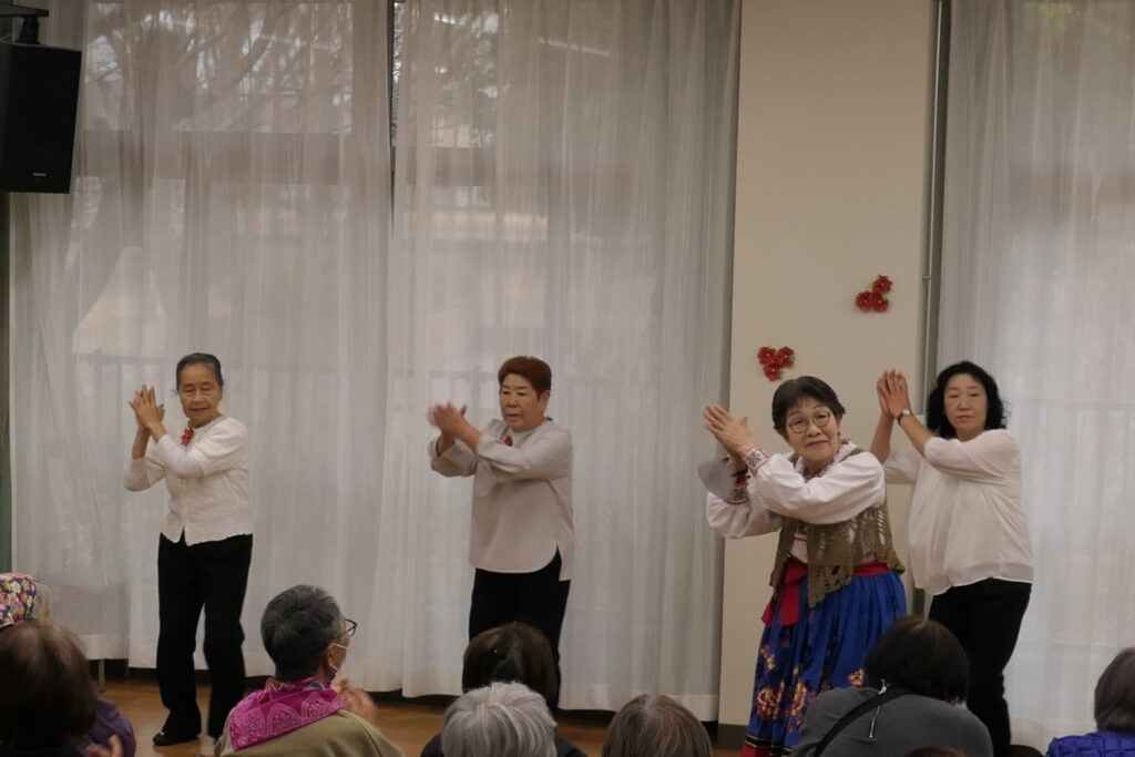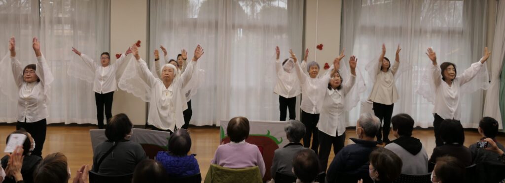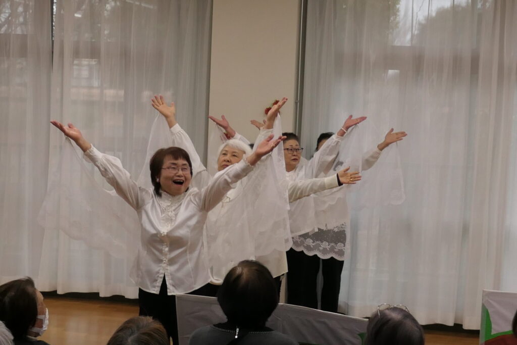 続いて、なのはな舞踊会「お日さん月さんありがとう」。かわいらしい日本舞踊をしなやかに踊りました。